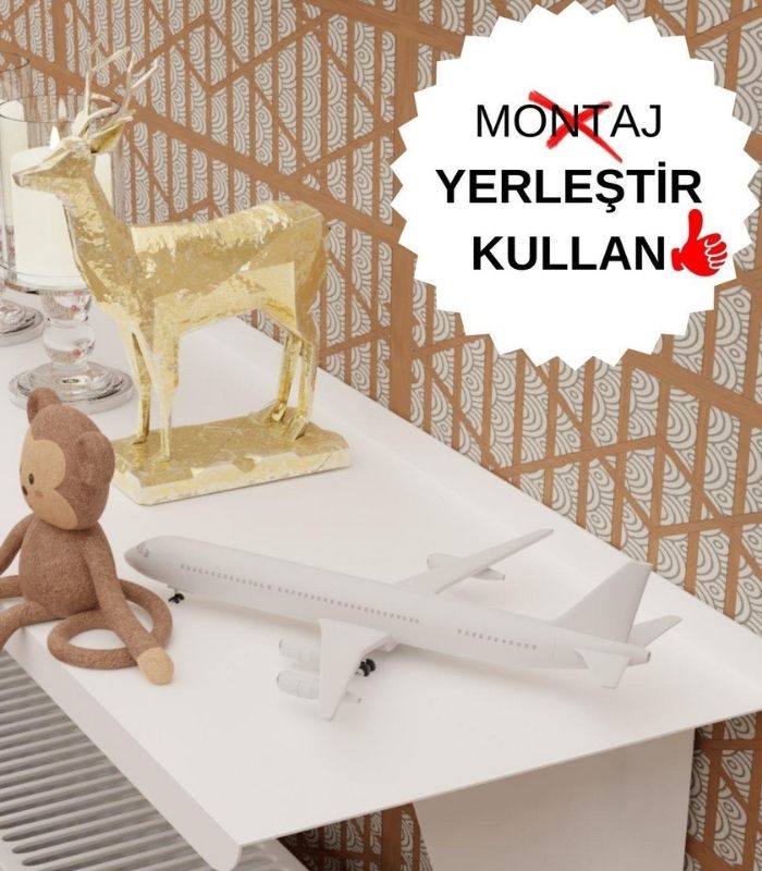 Risingmaber Beyaz Montajsız Petek Üstü Metal Raf, Kalorifer Peteği Raf Dresuar Uçan Raf 60 cm MT98B