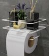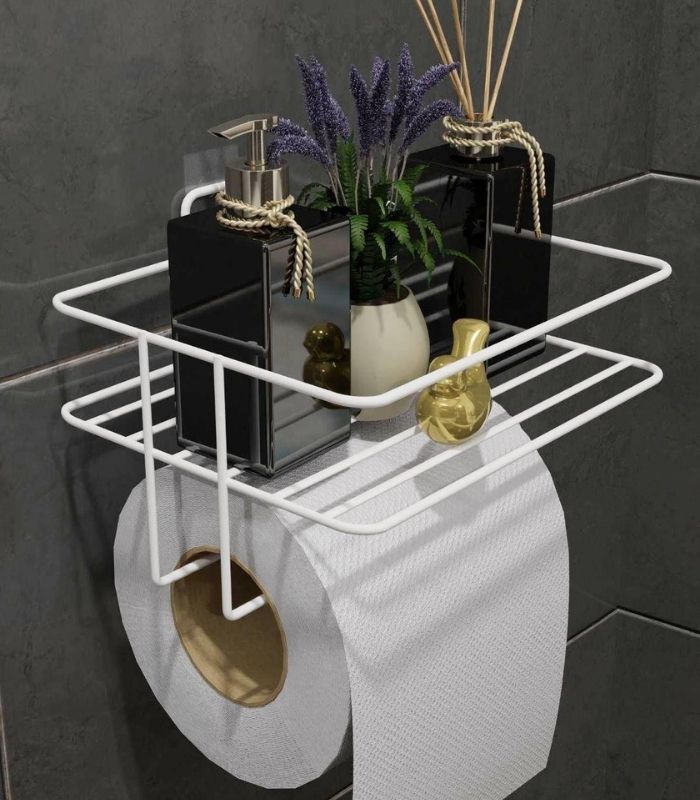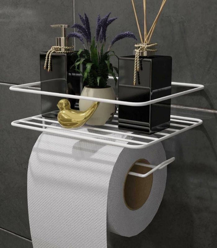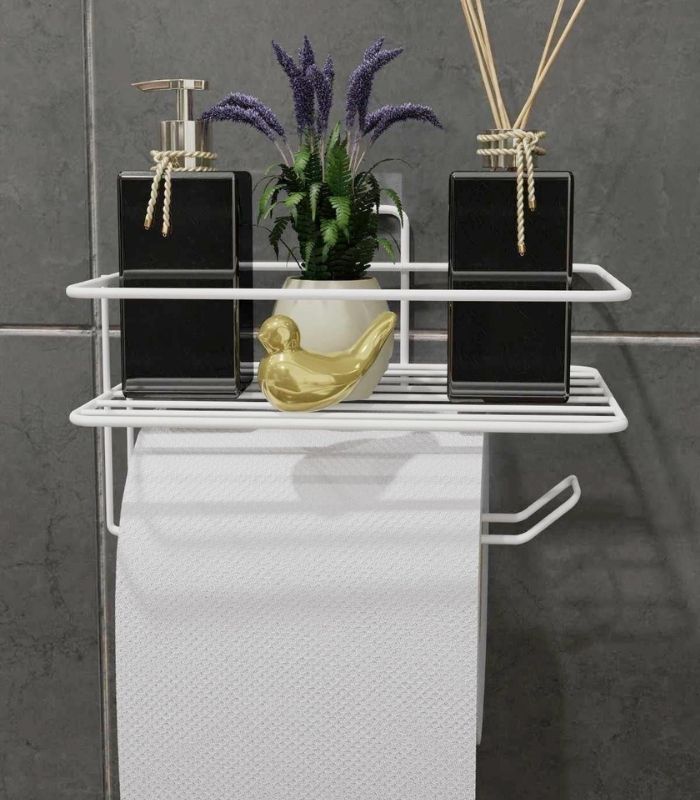 Risingmaber Beyaz Yapışkanlı Tuvalet Kağıtlık, Wc Kağıt Tutucu, Raflı Tuvalet Kağıdı Askısı, MT120B