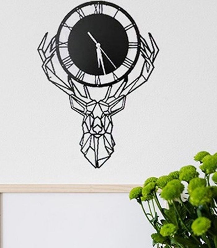 Risingmaber Dekoratif Siyah Metal Geyik Tasarımlı Duvar Saati 50×40 MS22