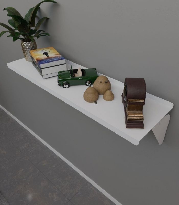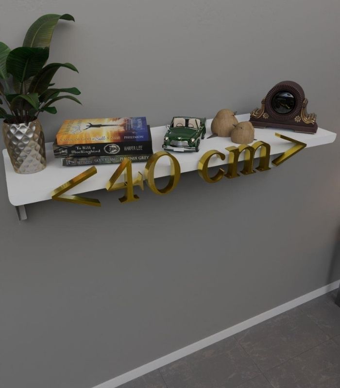 Risingmaber Metal Beyaz Vidalı Duvar Rafı, Dresuar Raf, Uçan Raf Dekoratif Kitap Rafı 40 cm MT122B