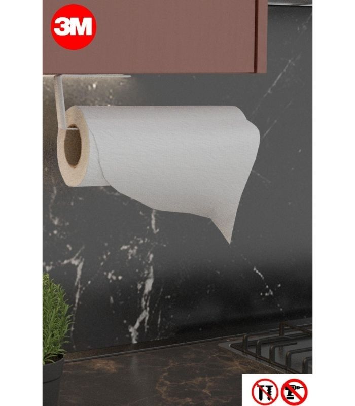 Risingmaber Metal Beyaz Yapışkanlı Kağıt Havluluk Yapışkanlı Havlu Askılığı, Banyo Askısı Yapışkanlı Havluluk ve Peçetelik 3M Yapışkanlı Tasarım MT72B