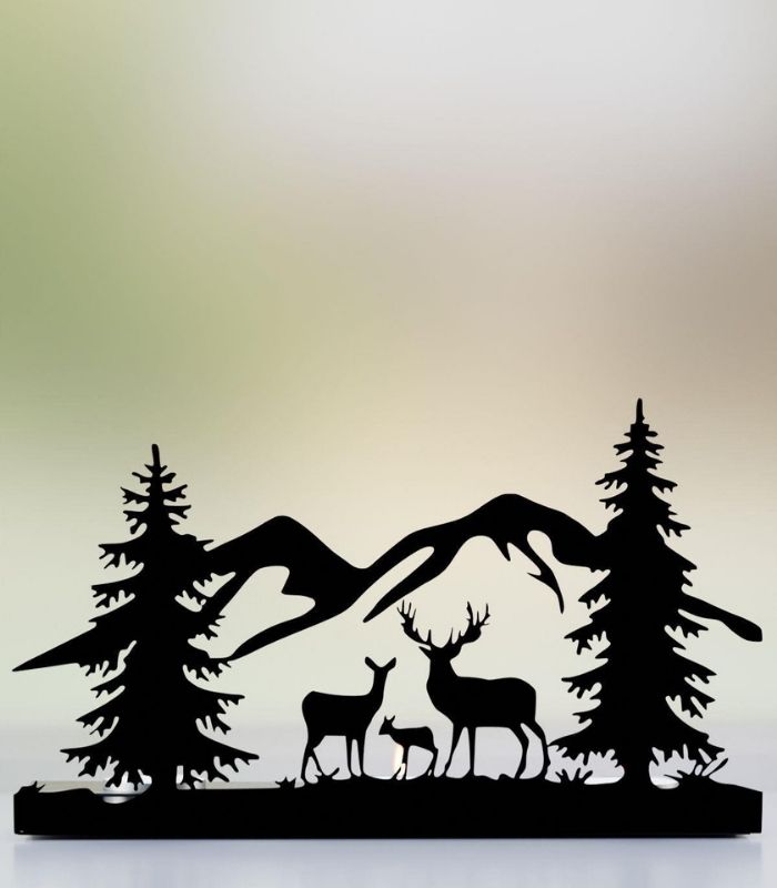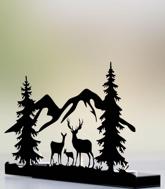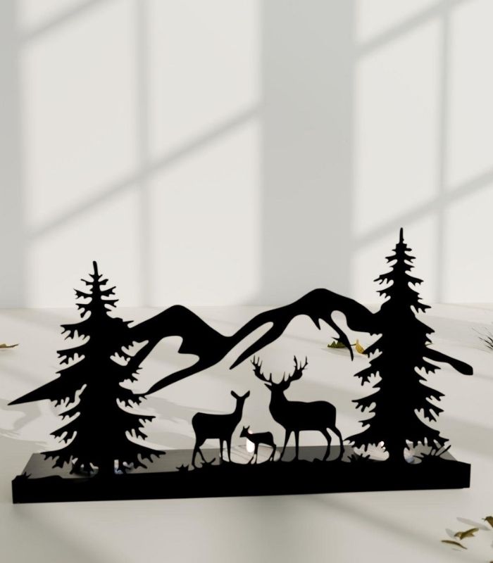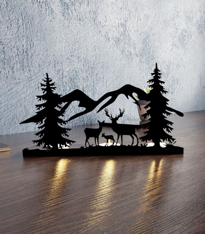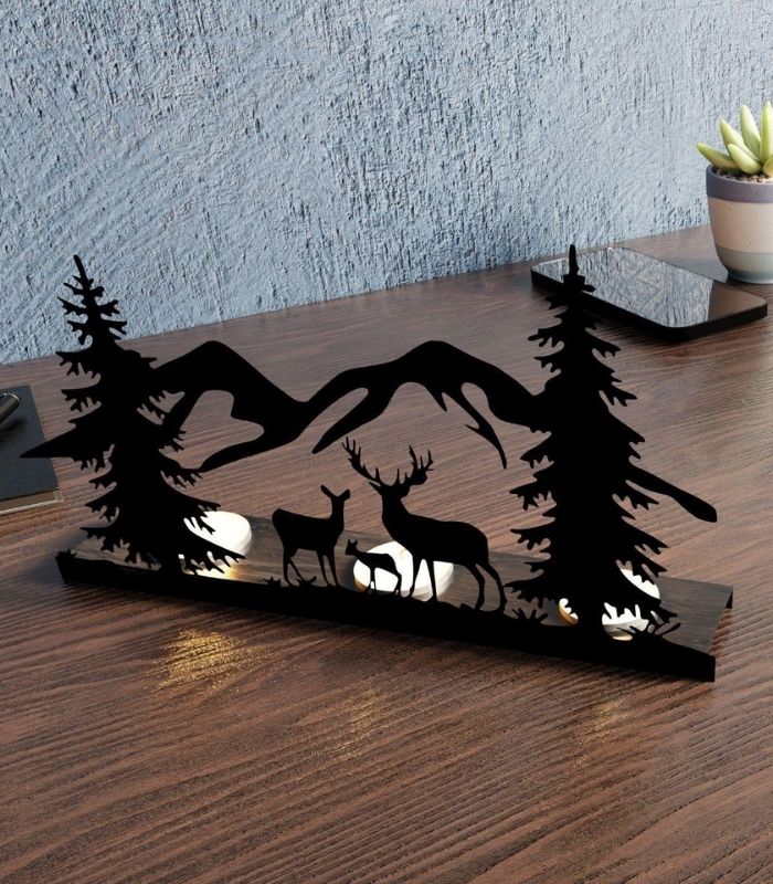 Risingmaber Ren Geyik Manzara Görünümlü Metal Mumluk Şamdan MT24