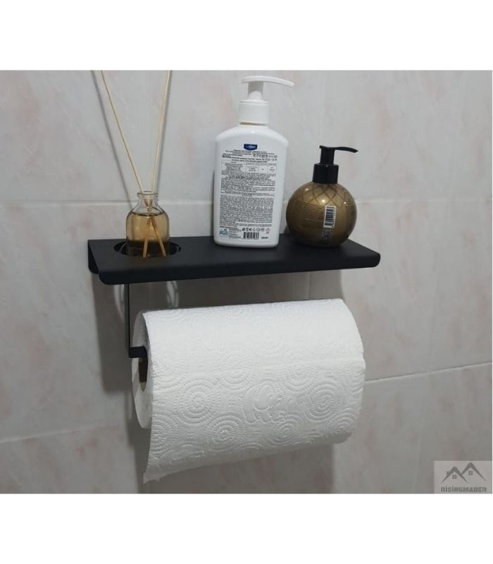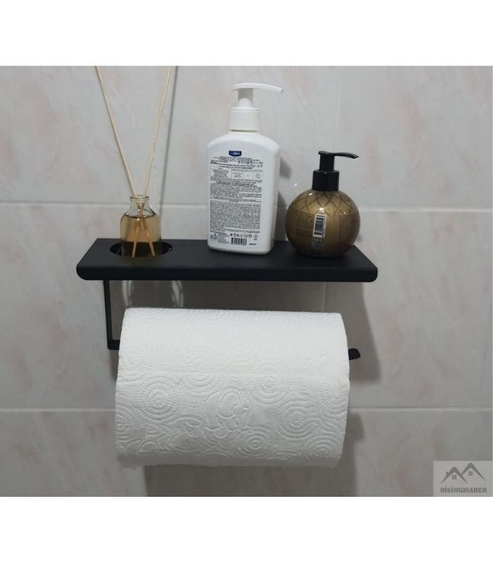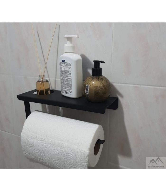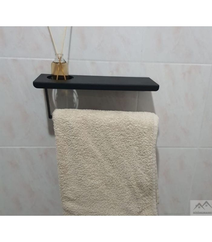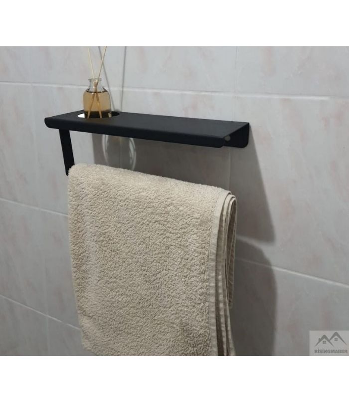Risingmaber Siyah Havlu Tutacağı Raf Metal Havlu Askısı Mutfak Banyo Raflı Havluluk Metal Raflı Havluluk (Koku Hediyeli) MT63S