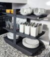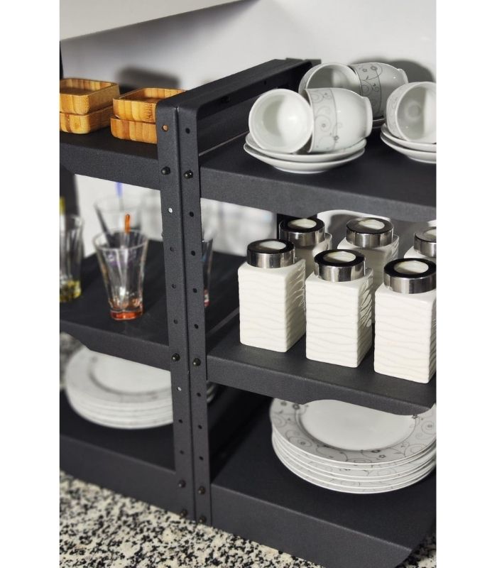 Mutfakta baharatlık, fincan rafı, tencereler, tavalar, küçük ev aletleri, her türlü porselen ve plastik tabaklar ve dekoratif amaçlı kahve köşenizde kullanabilirsiniz