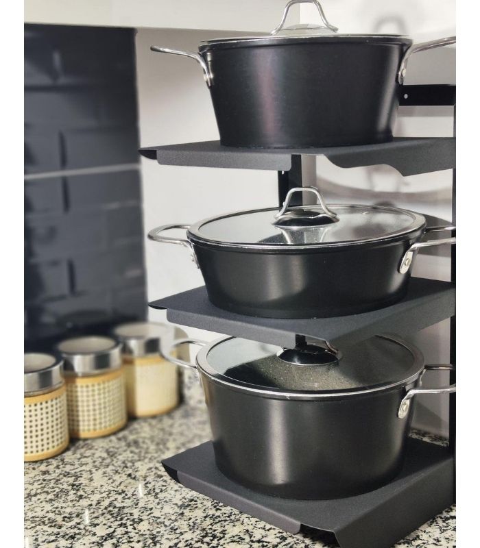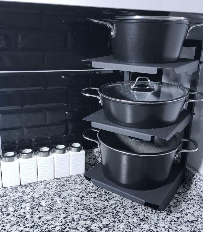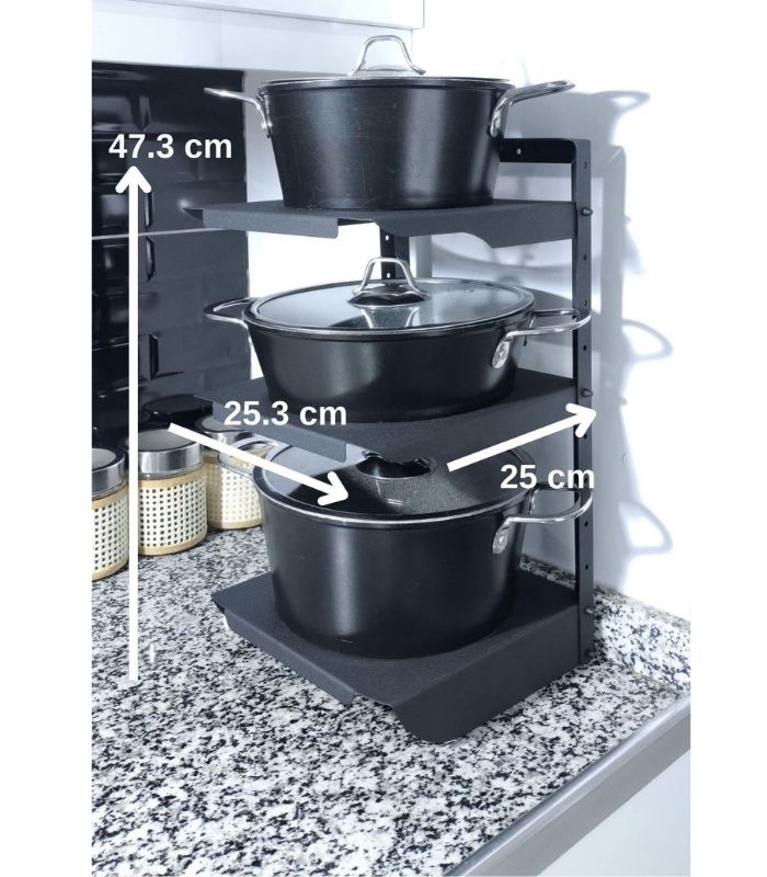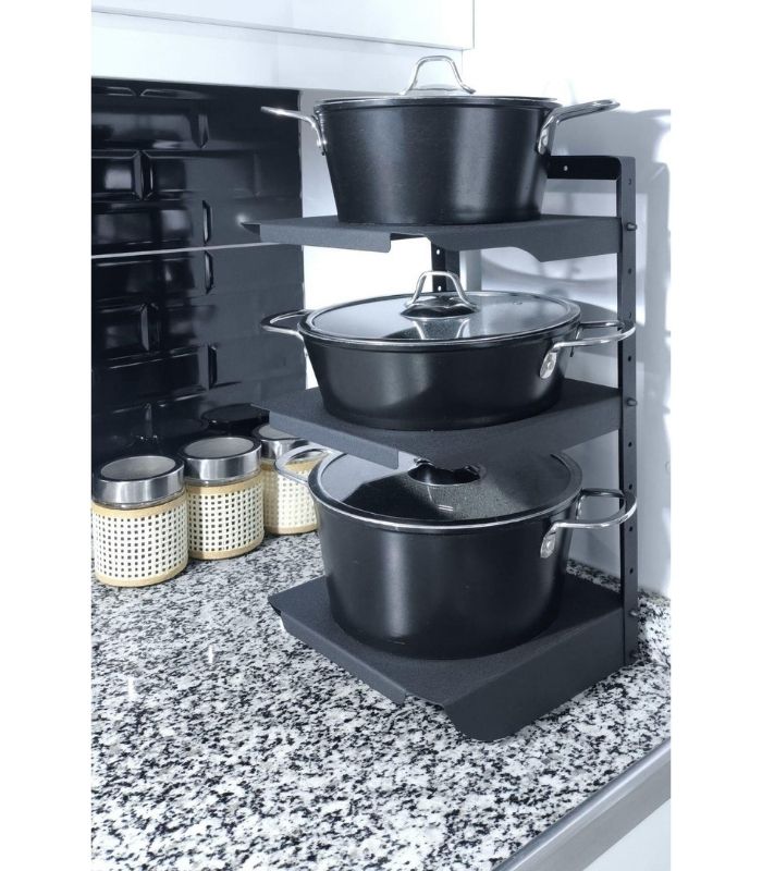 2 Adet Risingmaber Siyah Tencere Tava Düzenleyici Mutfak Organizeri Çok Amaçlı 3 Katlı Organizer Raf(İkili Set) MT102S