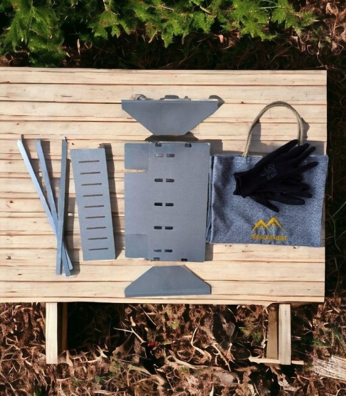 Risingmaber Taşıma Çantalı Portatif Mangal Katlanabilir Mangal (3 Adet Şiş ve Eldiven Hediyeli) MN4